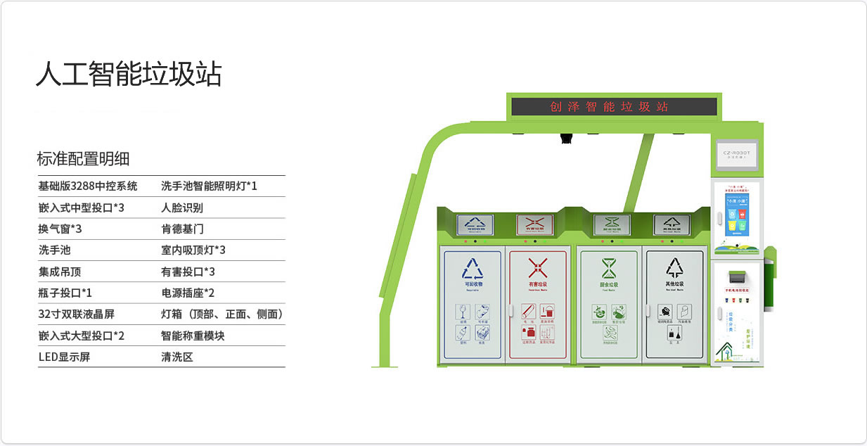 配有19寸顯示屏,擁有語音交互和大屏顯示功能,可廣告投放,具備學(xué)習(xí)、查詢和宣傳垃圾分類相關(guān)知識等功能。