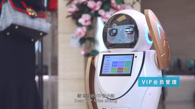 會(huì)說(shuō)英文的迎賓機(jī)器人