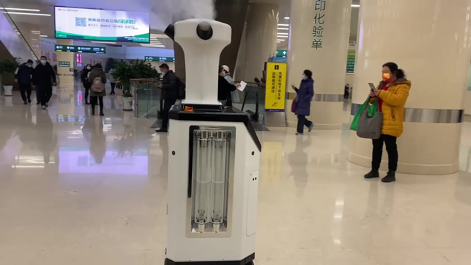 上海世博展覽館方艙醫(yī)院使用的消毒機(jī)器人