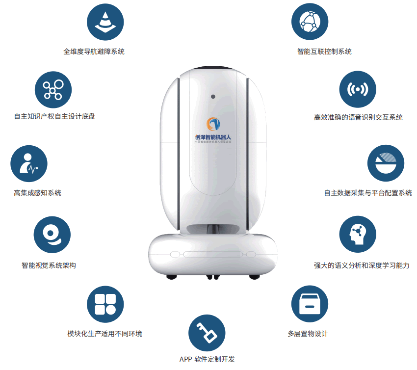 由公司自主研發(fā)設(shè)計(jì),基于人工智能(AI)和機(jī)器學(xué)習(xí)(ML)技術(shù)L域的突破,經(jīng)過(guò)精細(xì)調(diào)研與充分論證, 確保機(jī)器人控制智能、性能穩(wěn)定,結(jié)合客戶需求,通過(guò)不斷地創(chuàng)新研發(fā),重新定義送餐機(jī)器人。簡(jiǎn)潔大方的設(shè) 計(jì),取放飯菜更加便捷,置物托盤空間更大,一次能夠運(yùn)輸更多物品;激光雷達(dá)導(dǎo)航,無(wú)人駕駛自動(dòng)避障,無(wú)需鋪設(shè)導(dǎo)軌,能夠在復(fù)雜的環(huán)境中進(jìn)行迅速移動(dòng),快速完成配送任務(wù)。