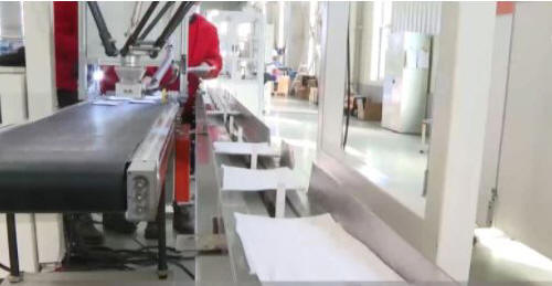 研發(fā)全自動平面型醫(yī)用外科口罩生產線及全自動折疊型醫(yī)用口罩生產線,實現(xiàn)卷材上料、折疊壓合、鼻梁筋上料、口罩成型、口罩切斷、耳帶上料及焊接、成品下料等工藝的全自動化生產。