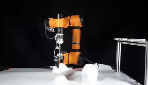 利用柔性抓取工具配合輕型協(xié)作機械臂,研發(fā)出N95口罩自動化分揀系統(tǒng),可以快速部署在口罩生產線上,代替人工分揀。