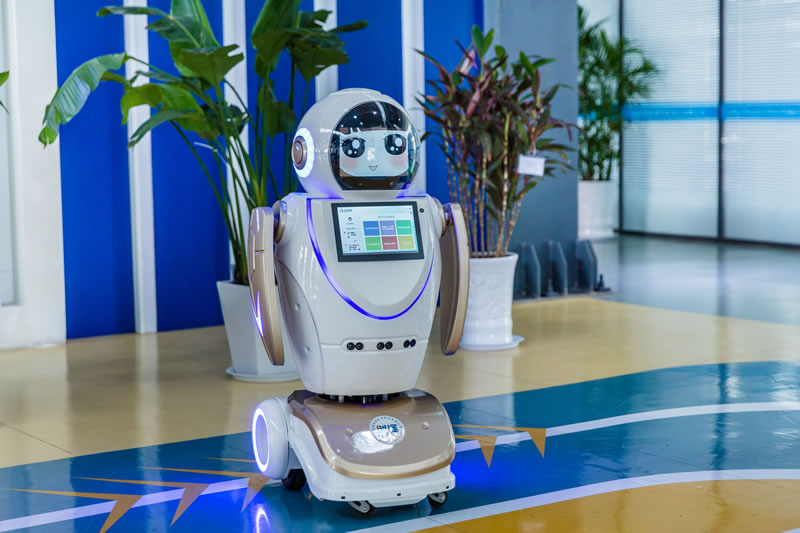 創(chuàng)澤的智能機(jī)器人在前臺工作,可語音對話喚醒