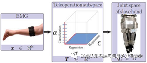 2019年,哥倫比亞團(tuán)隊提出了一種由EMG驅(qū)動的非擬人化機(jī)器人手遙操作方法,這種方法將人前臂的EMG信號連續(xù)映射與遠(yuǎn)程操作相關(guān)的三個子空間中,然后再從這個子空間映射到機(jī)器人手的關(guān)節(jié)空間[4]。這個方法有效且直觀,使新手操作者更快熟悉操作方案,可以魯棒地完成遠(yuǎn)程操作拾取和放置任務(wù)。