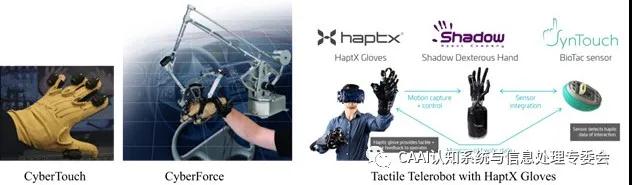 觸覺反饋對于接觸豐富的外部操作任務(wù)至關(guān)重要,觸覺設(shè)備已在外科手術(shù)機(jī)器人中得到廣泛研究,并用于在虛擬現(xiàn)實應(yīng)用程序中收集訓(xùn)練數(shù)據(jù),如HaptX development kit。一些商業(yè)產(chǎn)品CyberGlove、HaptX以物理阻力和空間接觸的形式提供了觸覺反饋,但是這種好處伴隨著成本的增加。HaptX與Converge Robotics Group(由國際公司組成的財團(tuán))共同開發(fā)了TactileTelerobot遠(yuǎn)程機(jī)器人,以推動觸覺和機(jī)器人技術(shù)的發(fā)展 [6]。TactileTelerobot是世界上D一個能夠?qū)⒈普娴挠|摸反饋傳輸給位于世界各地的操作員的機(jī)器人系統(tǒng),該系統(tǒng)集成了三個主要產(chǎn)品,每個主要產(chǎn)品都在其類別中處于L先地位:Shadow Robot Hands,SynTouch BioTac傳感器和HaptX Gloves。Tactile Telerobot通過真實無延遲的觸覺反饋實現(xiàn)了多種機(jī)械手靈巧操作,如倒水、擰瓶蓋、轉(zhuǎn)魔方、寫字、開紙盒、幫人帶耳機(jī),甚至人體按摩等。