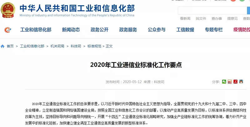 2020年5月12日,工信部發(fā)布《2020年工業(yè)通信業(yè)標(biāo)準(zhǔn)化工作要點(diǎn)》,提出聚焦5G網(wǎng)絡(luò)與應(yīng)用、人工智能、工業(yè)互聯(lián)網(wǎng)、物聯(lián)網(wǎng)、數(shù)據(jù)中心、車聯(lián)網(wǎng)、智能制造、無(wú)人機(jī)、超G清視頻、虛擬現(xiàn)實(shí)等重點(diǎn)L域,以專項(xiàng)方式成體系推進(jìn)重點(diǎn)L域行業(yè)標(biāo)準(zhǔn)制定工作,促進(jìn)產(chǎn)業(yè)基礎(chǔ)能力和產(chǎn)業(yè)鏈現(xiàn)代化水平提升。
