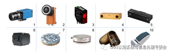 圖2 應(yīng)用在機(jī)器人操控任務(wù)中的典型傳感器(1)G速工業(yè)相機(jī)(2)智能工業(yè)攝像頭(3)激光距離傳感器(4)立體相機(jī)(5)結(jié)構(gòu)光傳感器(6)飛行時(shí)間相機(jī)(7)關(guān)節(jié)扭矩傳感器(8)腕力/扭矩傳感器(9)手指壓力傳感器(10)手指觸覺(jué)陣列