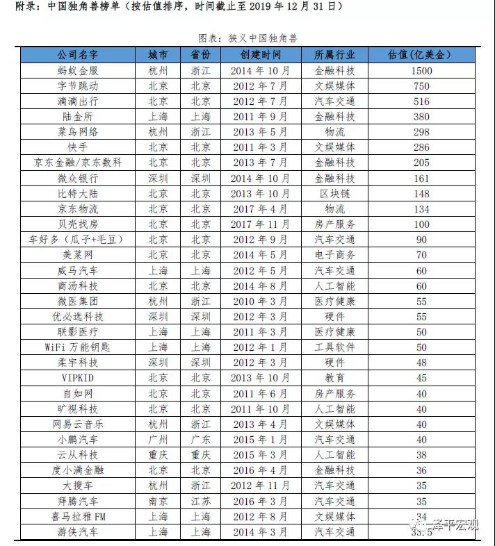 2019年中國(guó)獨(dú)角獸企業(yè)數(shù)量達(dá)到218家,總估值7964億美元,平均估值36.5億美元,超過100億美元(含)的超級(jí)獨(dú)角獸企業(yè)共7家