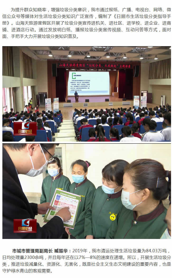 2020年, 日照市實(shí)現(xiàn)公共機(jī)構(gòu)生活垃圾分類全覆蓋,東港區(qū)基本建成生活垃圾分類示范片區(qū)。