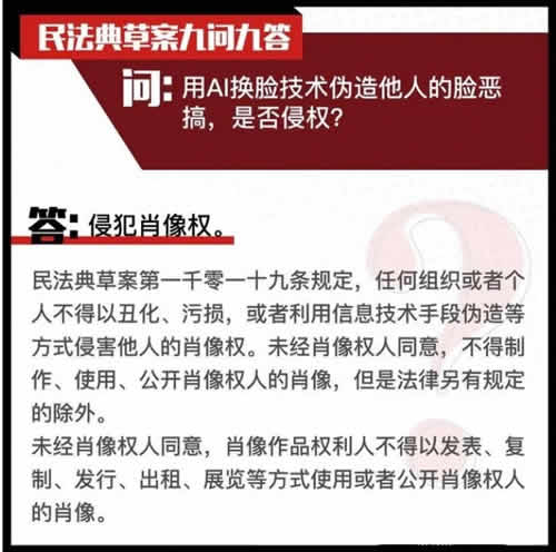 有分析人士指出,《民法典》正式實(shí)行后,除了法律另有規(guī)定的情況,如果被換臉的人沒(méi)有同意,而你用了P圖、拍攝、鬼畜、繪畫(huà)、DeepFakes等各種方式處理