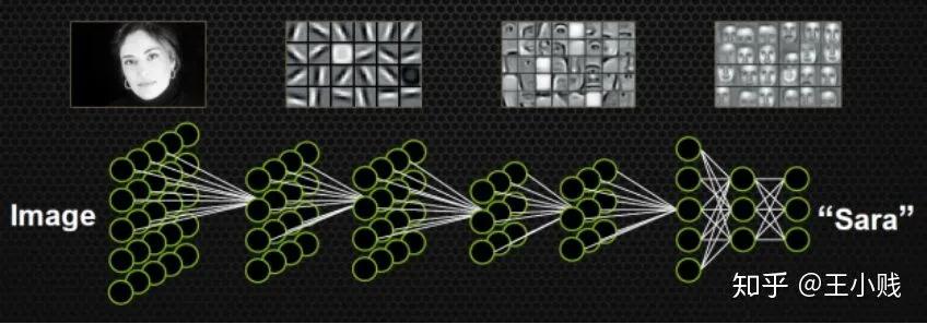 而通過一些對神經(jīng)網(wǎng)絡(luò)隱層的可視化我們也發(fā)現(xiàn):比如下圖的一個人臉識別的例子,神經(jīng)網(wǎng)絡(luò)在這個過程中先學(xué)到了邊角的概念,之后學(xué)到了五官,后學(xué)到了整個面部的特征。
