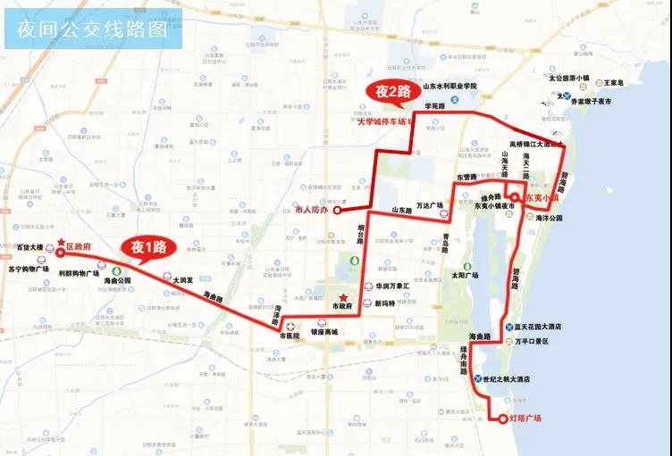 為助力夜間經(jīng)濟(jì)發(fā)展,進(jìn)一步滿足市民夜間出行需求,經(jīng)前期調(diào)研,擬于6月20日起試運(yùn)行由“東夷小鎮(zhèn)北”站經(jīng)東營(yíng)路、青島路、山東路、煙臺(tái)路、泰安路、菏澤路、海曲路至“東港區(qū)政府”站的公交夜1路,由“市人防辦”站經(jīng)山東路、煙臺(tái)路、濱州路、學(xué)海路、學(xué)苑路、太公島二路、碧海路、海曲路、綠舟南路至“燈塔廣場(chǎng)”站的公交夜2路。具體情況如下: