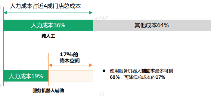 服務機器人可以使人工成本降低50%左右;酒店場景中服務機器人便于給客戶打造私密空間;旅游場景中服務機器人可以給出完全透明且準確的信息