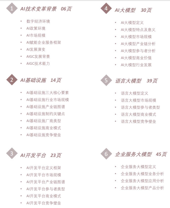 2023年被稱為“AI元年”,人工智能、AI大模型概念迅速點燃市場。本篇報告重點關注人工智能相關技術在廣泛 的企業(yè)服務L域所帶來的變革應用研究,將洞察中國AI技術如何為企業(yè)服務L域帶來發(fā)展與應用方面的升級和演變,同時分析行業(yè)規(guī)模、落地應用、未來趨勢,提供AI變革企業(yè)服務場景應用的理解和解讀。