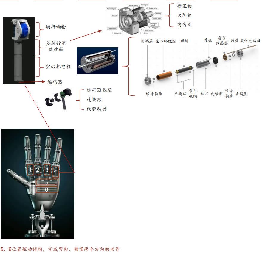 旋轉(zhuǎn)執(zhí)行器分布于肩部、手部等多自由度關(guān)節(jié),作用是將某物旋轉(zhuǎn)到一定角度完成旋轉(zhuǎn)運(yùn)動(dòng);驅(qū)動(dòng)關(guān)節(jié)完成旋轉(zhuǎn)動(dòng)作,減速器為核心部件