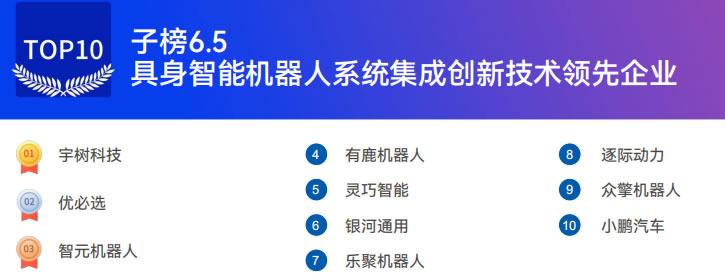 綠的諧波 有鹿機器人 銀河通用 樂聚機器人 逐際動力 星海圖 小鵬汽車 眾擎機器人 云深處 傅利葉智能 開普勒 靈寶CASBOT 星動紀元 智平方 因時機器人 強腦科技 穹徹智能 小雨智造 零次方機器人 千尋智能 加速進化 自變量機器人 靈巧智能 原力無限