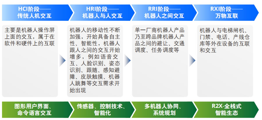 相較于傳統(tǒng)機(jī)器人交互,R2X交互將實(shí)現(xiàn)交互場(chǎng) 景、交互內(nèi)容和交互模式多個(gè)維度的躍遷: