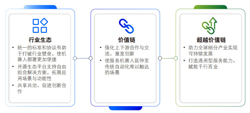• 統(tǒng)一的標(biāo)準(zhǔn)和協(xié)議有助于打破行業(yè)壁壘,使機(jī)器人部署更加便捷