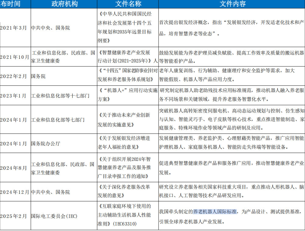 基于社會(huì)老齡化和安全戰(zhàn)略考量,21年來黨和密集出臺(tái)多項(xiàng)養(yǎng)老機(jī)器人D層政策文件,彰顯對(duì)老齡化工作的