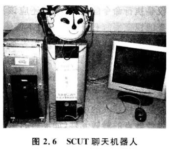 近年來,SCUT “智能計算機”科研團隊也對 聊天機器人展開了研究,如圖2.6所示。他們開 發(fā)的SCUT 聊天機器人包括攝像頭及驅(qū)動模塊、 語音拾取模塊、語音識別模塊、知識查詢模塊、語 音生成模塊;攝像頭捕獲人臉圖像,語音信號經(jīng) 由語音拾取模塊和語音識別模塊后識別出語義,聊天機器人根據(jù)用戶的語音來了解用戶的需求,