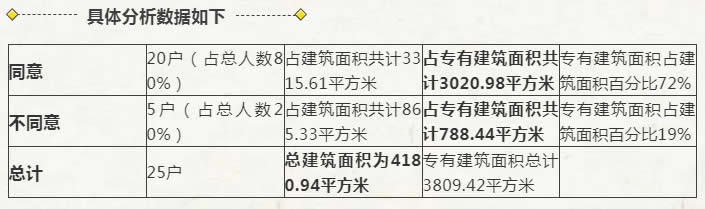 2016年1月10日,湛江市霞山區(qū)某小區(qū)就召開了業(yè)主大會(huì),并作出決議,確認(rèn)該小區(qū)業(yè)主共有66戶,其中同意加裝小區(qū)電梯的業(yè)主數(shù)為52戶(東門總共25戶,其中20戶同意加裝;中門總共17戶,其中9戶同意加裝;西門總共24戶,其中23戶同意加裝),該小區(qū)業(yè)主大會(huì)會(huì)議決定:在該小區(qū)東門、西門各加裝一臺(tái)電梯。2016年11月18日,根據(jù)該小區(qū)的申請(qǐng),湛江規(guī)劃局依法頒布了在該小區(qū)東門、西門各加裝一臺(tái)電梯的《建設(shè)工程規(guī)劃許可證》。小區(qū)西門的電梯安裝較為順利,但東門不同意安裝的5位業(yè)主對(duì)在東門安裝電梯的工程實(shí)施中百般阻撓,將車輛停放在施工現(xiàn)場(chǎng)以阻礙施工。經(jīng)派出所、社區(qū)法律顧問等多方調(diào)解無效后,2017年9月11日,東門同意安裝的李康林等20人將不同意安裝的戴戈等5人訴上法庭,要求被告移走障礙物,不得阻止電梯安裝。 經(jīng)法院查明,涉及本案的業(yè)主共有25戶,分為三種戶型,E號(hào)戶型的建筑面積為182.78平方米、專有建筑面積為166.54平方米,F(xiàn)號(hào)戶型的建筑面積為144.48平方米、專有建筑面積為131.64平方米,G號(hào)戶型的建筑面積為172.51平方米、專有建筑面積為157.18平方米。同意加裝電梯的戶主有20戶,其中E號(hào)戶型有6戶,F(xiàn)號(hào)戶型有7戶,G號(hào)戶型有7戶,占建筑面積共計(jì)3315.61平方米,占專有建筑面積共計(jì)3020.98平方米。不同意加裝電梯的戶主有5戶,其中E號(hào)戶型有3戶,F(xiàn)號(hào)戶型有1戶,G號(hào)戶型有1戶,占建筑面積共計(jì)865.33平方米,占專有建筑面積共計(jì)788.44平方米。涉案樓房東門業(yè)主的總建筑面積為4180.94平方米。