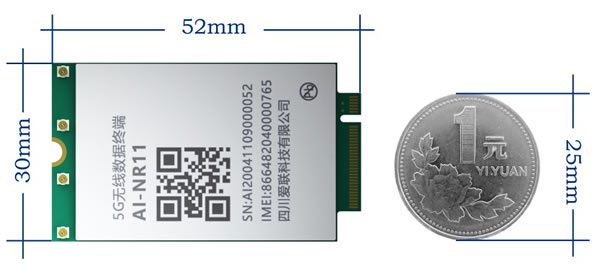 AI-NR11 5G模組采用標(biāo)準(zhǔn)M.2封裝設(shè)計,寬度僅比1元硬幣寬5mm,真正做到了和4G模組同尺寸。采用四天線替代八天線,通過天線輪詢SRS功能,智能快速選出優(yōu)天線方案,有效提升上網(wǎng)速率體驗。從一款5G工業(yè)互聯(lián)網(wǎng)模組下線到該模組的成功研發(fā),時間跨度不到5個月。