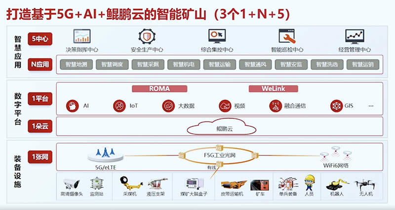 一張網、一朵云、一平臺、N應用、五中心,組成了華為智能礦山聯(lián)合解決方案的整體面貌。