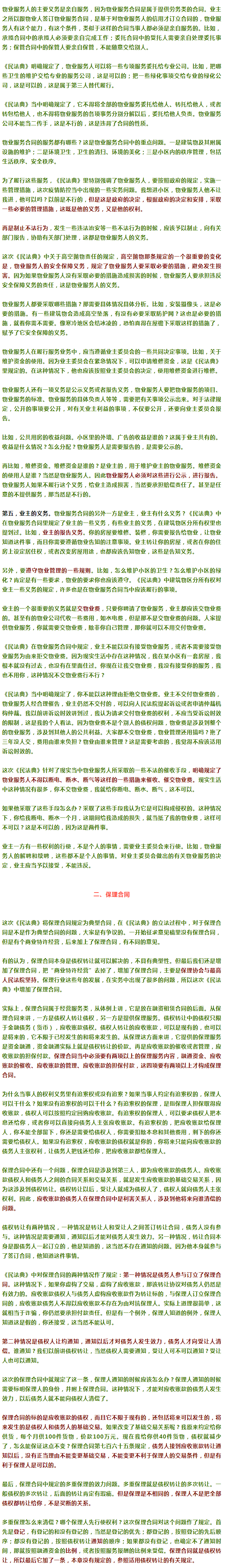 物業(yè)服務(wù)是隨著我們城市化的發(fā)展,居民小區(qū)的公共服務(wù)需要而產(chǎn)生的。物業(yè)服務(wù)合同它是在委托合同這一章后,它從合同標(biāo)的上來講,跟委托合同的標(biāo)的是類似的,都屬于提供勞務(wù)類的!睹穹ǖ洌ú莅福樊(dāng)中曾經(jīng)規(guī)定,物業(yè)合同沒有規(guī)定的,參照適用委托合同的規(guī)定。曾經(jīng)有這條規(guī)定,但是后來沒有了,它還是有很大的差別,但是從提供勞務(wù)服務(wù)的標(biāo)的上來講,它們是屬于同一類服務(wù)合同。