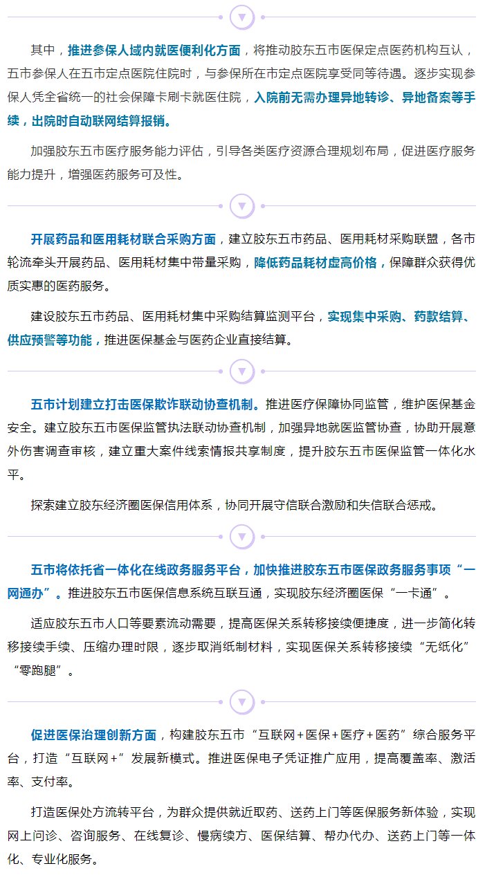 膠東五市構(gòu)建醫(yī)保發(fā)展共同體,將重點(diǎn)推進(jìn)參保人域內(nèi)就醫(yī)便利化、開展藥品和醫(yī)用耗材聯(lián)合采購、支持G新醫(yī)藥產(chǎn)業(yè)發(fā)展、建立打擊醫(yī)保欺詐聯(lián)動(dòng)協(xié)查機(jī)制、加快醫(yī)保信息互通共享、促進(jìn)醫(yī)保治理創(chuàng)新等六個(gè)方面的工作。