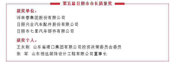 第五屆日照市市長質(zhì)量獎(jiǎng)名單,共有3家單位和2名個(gè)人獲獎(jiǎng)!