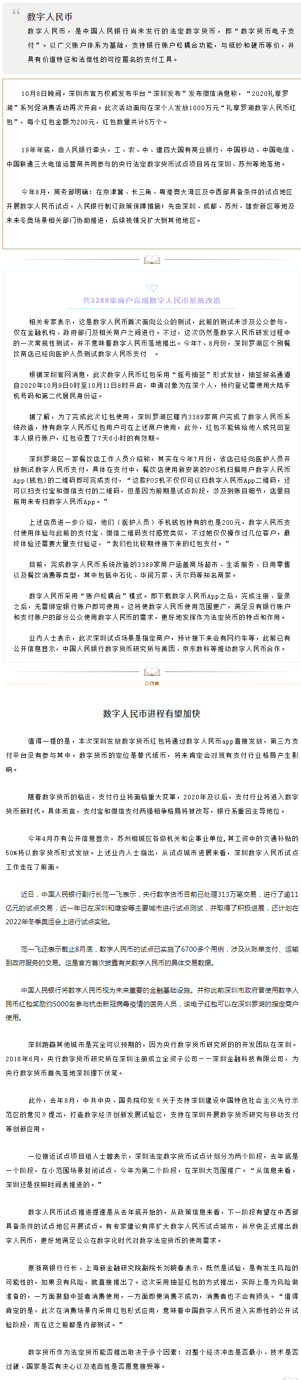 為闡明人民銀行在數(shù)字人民幣研發(fā)上的基本立場,共同推動建立面向數(shù)字經(jīng)濟時代、普遍惠及大眾,中國人民銀行數(shù)字人民幣研發(fā)工作組發(fā)布本白皮書。