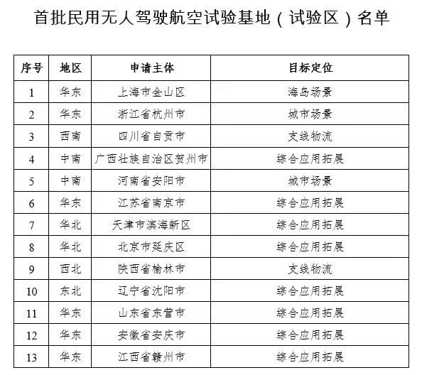 民航局關(guān)于公布首批民用無人駕駛航空試驗基地( 試驗區(qū)) 的通知民航各地區(qū)管理局,各運(yùn)輸(通用)航空公司,各機(jī)場公司,空管局、運(yùn)行監(jiān)控中心、民航大學(xué)、飛行學(xué)院、管干院、航科院、民航二所、校驗中心、信息中心,各協(xié)會: