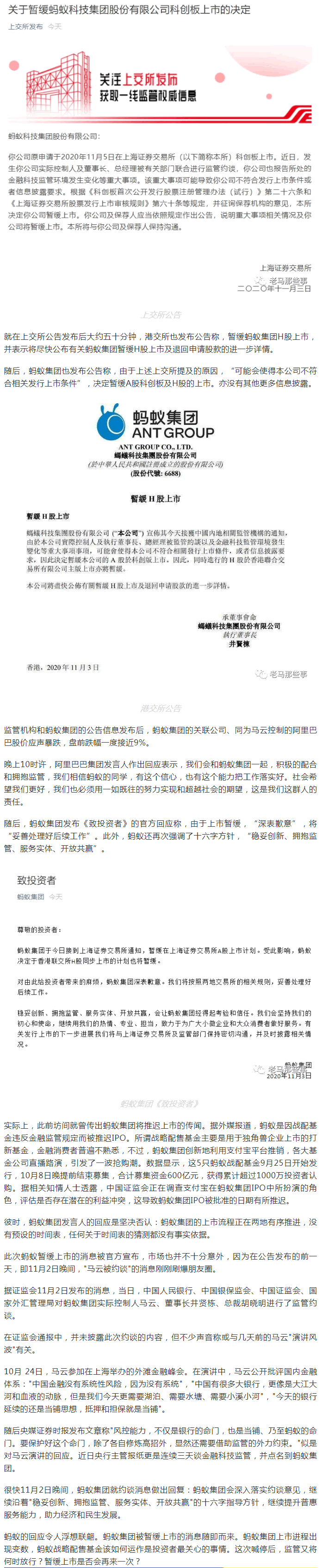 螞蟻集團(tuán)(688688.SH、6688.HK)在滬市科創(chuàng)板IPO計(jì)劃突然暫緩,同時(shí)進(jìn)行的H股于香港聯(lián)合交易所有限公司主版上市亦將暫緩
