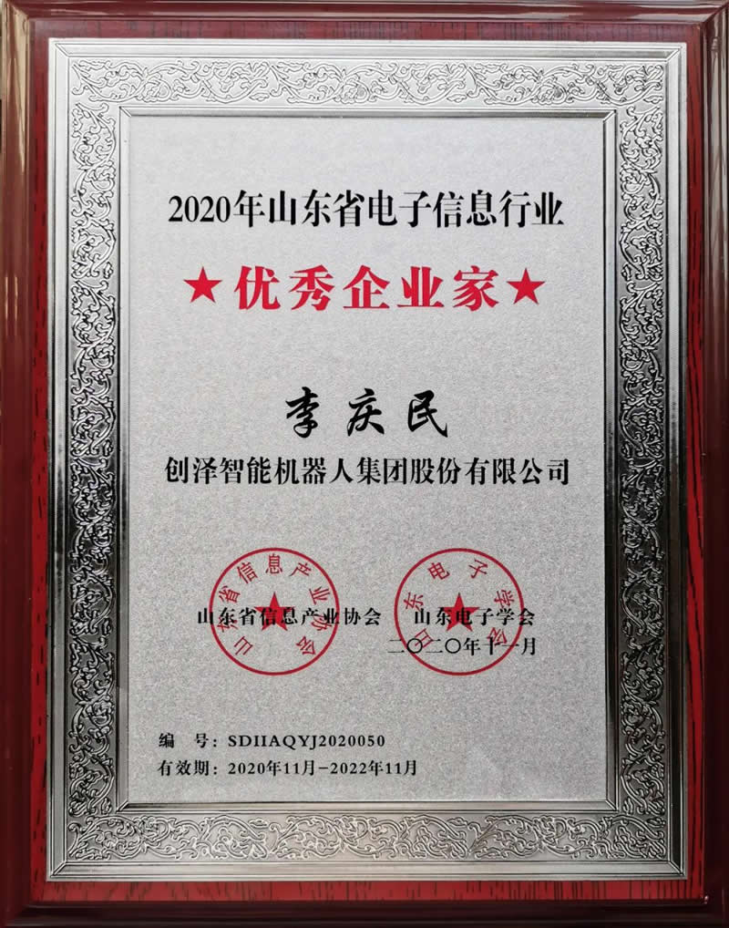 評審專家從工作經(jīng)歷、榮譽資質(zhì)、企業(yè)經(jīng)營等方面進行初審、復(fù)審后,創(chuàng)澤集團董事長李慶民榮獲“山東省電子信息行業(yè)優(yōu)秀企業(yè)家”榮譽稱號。