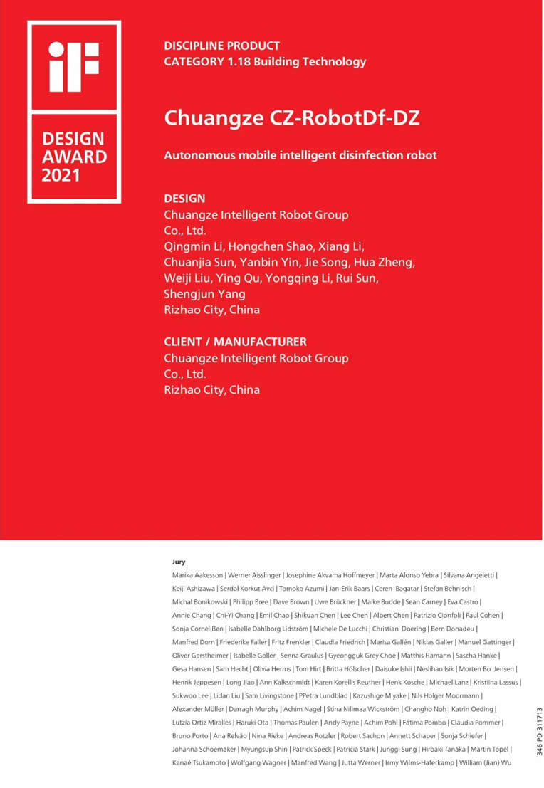 “好的設(shè)計賦予產(chǎn)品靈魂”。今年iF設(shè)計獎共有來自52個國家的近10000件作品參賽,評選過程競爭十分激烈,入選2021年iF設(shè)計獎的移動式消毒機器人企業(yè)共有兩家:中國的創(chuàng)澤集團和丹麥的Blue Ocean Robotics。創(chuàng)澤集團榮獲此次獎項表明其創(chuàng)新產(chǎn)品設(shè)計和品質(zhì)獲得了國際認可,也是對創(chuàng)澤集團AI應(yīng)用創(chuàng)新引L力的肯定。 未來,創(chuàng)澤集團將繼續(xù)深耕探索,以前瞻設(shè)計理念、出色產(chǎn)品引L行業(yè)發(fā)展!
