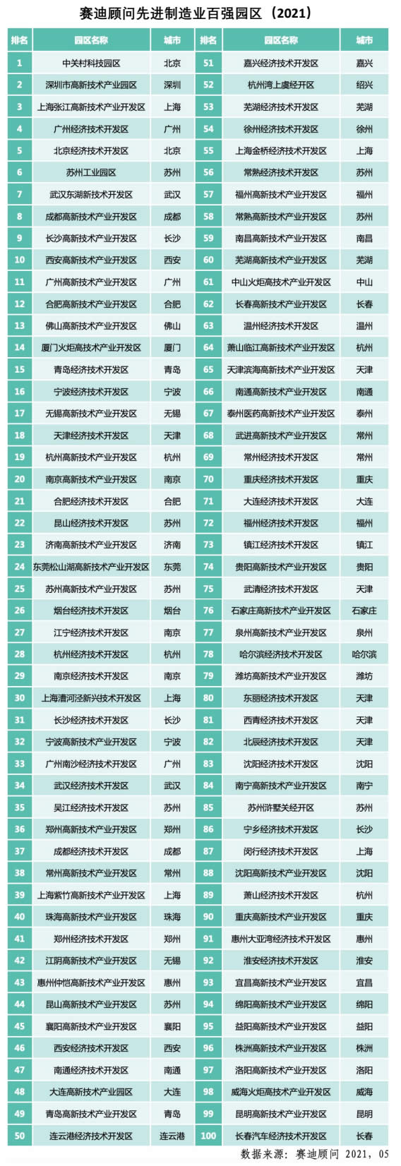 為進一步推動產(chǎn)業(yè)園區(qū)制造業(yè)質量變革、效率變革、動力變革,培育打造具有國際競爭力的先進制造業(yè)集群,形成了先進制造業(yè)百強園區(qū)榜單