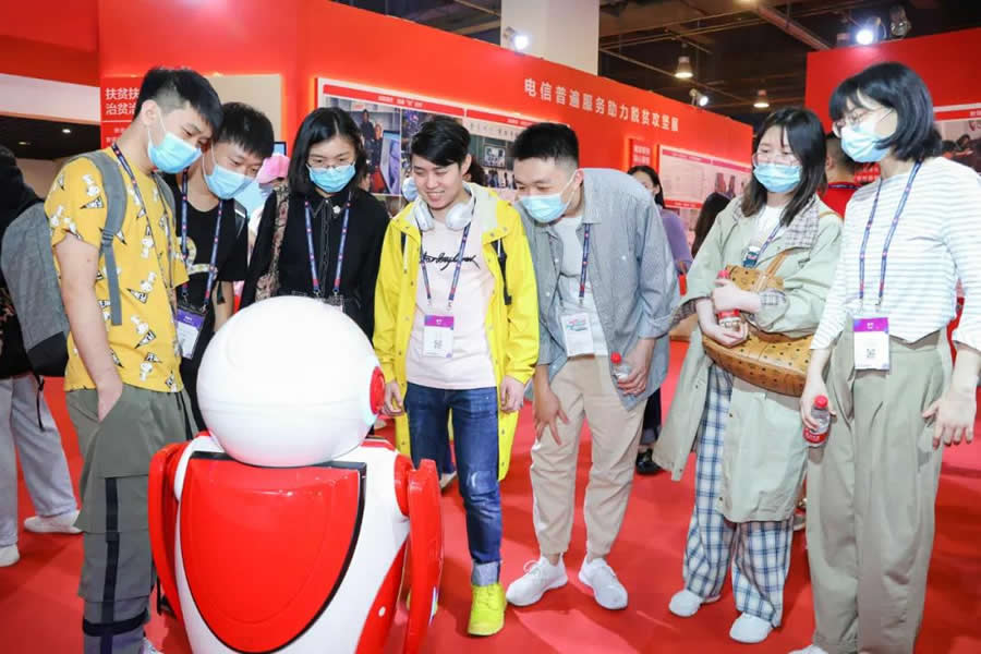 展會(huì)期間,智能黨建機(jī)器人化身“電信普遍服務(wù)助力脫貧攻堅(jiān)展”區(qū)“講解員”,出色完成了信息查詢、迎賓接待、宣傳講解等多項(xiàng)任務(wù),備受觀展嘉賓的廣泛關(guān)注。另一邊,我們的明星產(chǎn)品智能消毒機(jī)器人擔(dān)任了展會(huì)“志愿者”工作,保障與會(huì)人員的衛(wèi)生安全。