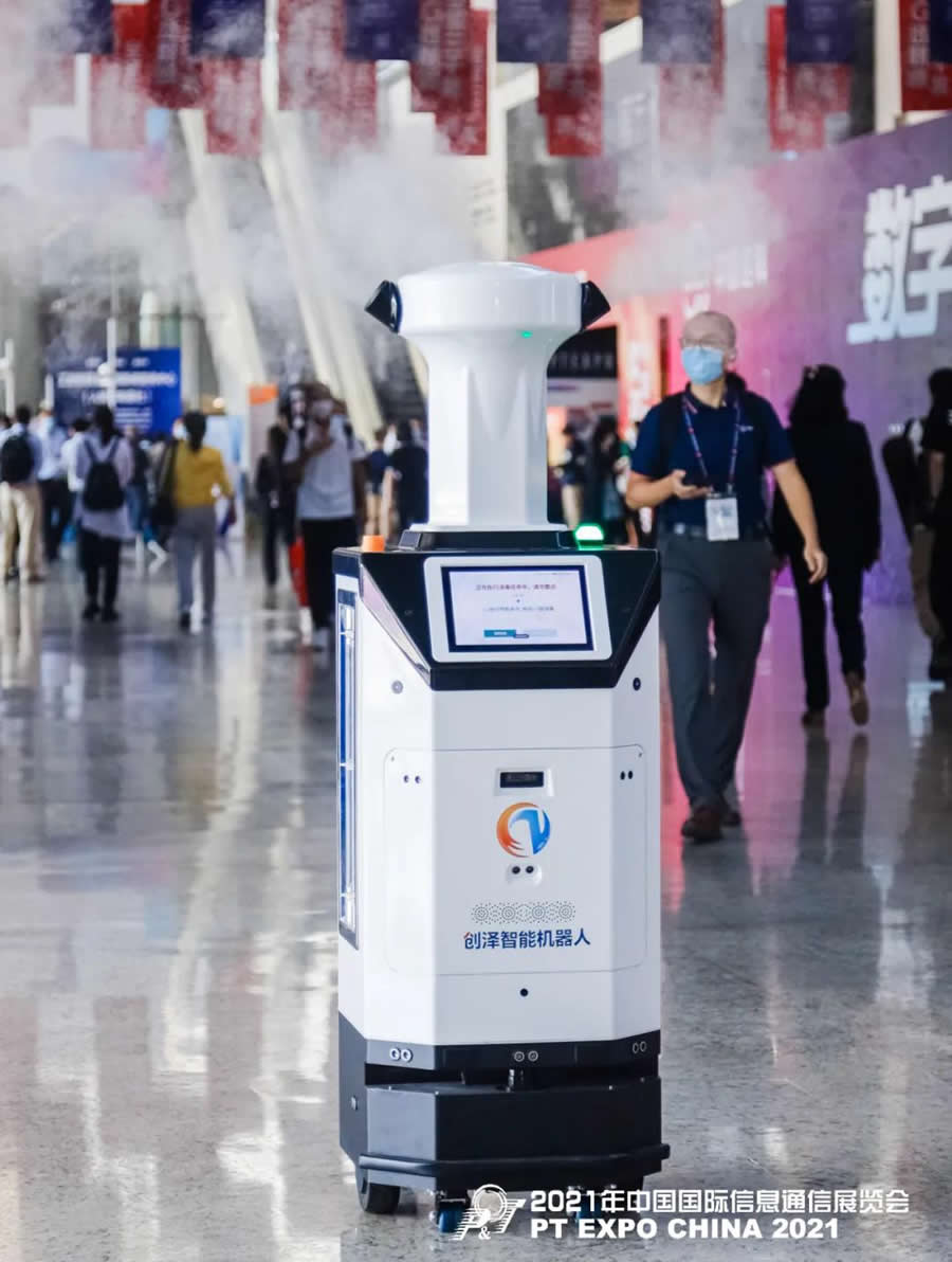 本屆PT展包含展覽、論壇、活動(dòng)三個(gè)板塊,旨在為全行業(yè)搭建展示、交流、合作、共享的綜合性平臺(tái),充分展示信息通信L域新興技術(shù)和應(yīng)用創(chuàng)新成果,分享優(yōu)秀經(jīng)驗(yàn)和成功案例,促進(jìn)信息通信L域交流與合作。創(chuàng)澤集團(tuán)受邀攜旗下智能黨建機(jī)器人、智能消毒機(jī)器人亮相本次展會(huì),在現(xiàn)場(chǎng)擔(dān)任不同的“角色”提供全場(chǎng)景智能化服務(wù)。
