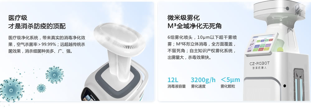 空氣消毒機(jī)器人使用等離子消毒,紫外線消毒,地面消毒和霧化消毒等方式殺滅空氣中的病毒,可以應(yīng)用在房間 大廳等場景