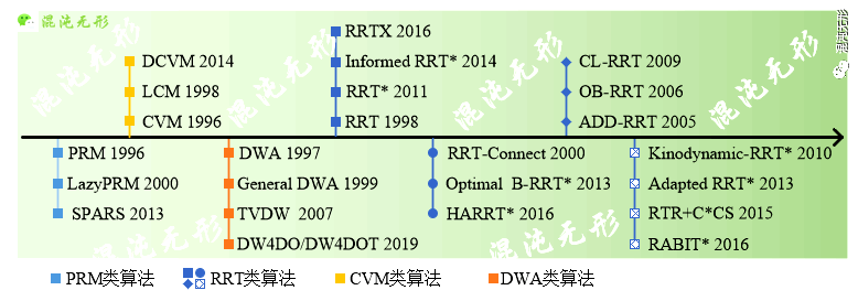 圖規(guī)劃算法與空間采樣算法已經(jīng)能夠在諸多場景下的規(guī)劃生成一條無碰撞路徑,實(shí)時性和動態(tài)適應(yīng)性逐漸提升,但多數(shù)算法仍存在路徑質(zhì)量差、未考慮動力學(xué)約束等問題。