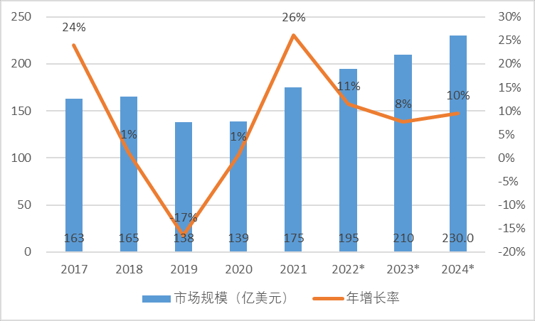 規(guī)模將持續(xù)增加, 2024 年將有望達(dá)到 230 億美元。