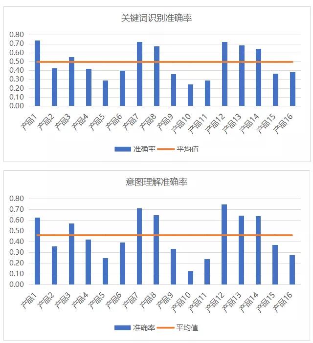 總體來看,各家參評產(chǎn)品在關(guān)鍵詞識(shí)別和意圖理解能力上參差不齊,準(zhǔn)確率G值與低值相差都超過了50個(gè)百分點(diǎn)。在關(guān)鍵詞識(shí)別能力上,有6款產(chǎn)品的準(zhǔn)確率超過60%,基本可以識(shí)別出“新型G狀病毒”、“N95口罩”、“發(fā)燒干咳”、“密切接觸者”等疫情強(qiáng)相關(guān)詞匯,以進(jìn)行關(guān)鍵詞匹配和擴(kuò)展,確保答復(fù)的準(zhǔn)確性和豐富性。在意圖理解能力上,有7款產(chǎn)品的準(zhǔn)確率超過50%,可對用戶提出的問題有針對性的進(jìn)行答復(fù)、相關(guān)問題推送和情緒安撫,從而提供準(zhǔn)確、及時(shí)、有效的服務(wù)。