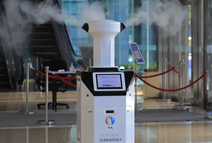 利用超聲波霧化廣覆蓋的智能消毒機(jī)器人,在小區(qū)充當(dāng)著防疫小幫手的角色,替代傳統(tǒng)人工噴灑消毒液的工作,執(zhí)行標(biāo)準(zhǔn)化的防疫措施
