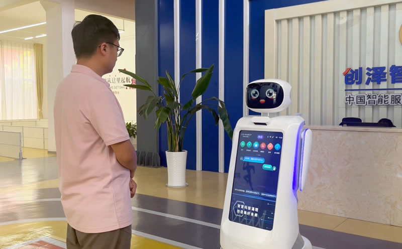 一來(lái)到創(chuàng)澤公司前臺(tái),一名機(jī)器人接待員便主動(dòng)迎上前來(lái)。它不但可以詢(xún)問(wèn)你的來(lái)訪目的,還可以為你做信息登記,向你介創(chuàng)澤基本情況、業(yè)務(wù)實(shí)力、黨建特色、所獲榮譽(yù);它可以引L你到接待室,也能對(duì)一些問(wèn)詢(xún)做出基本回答。