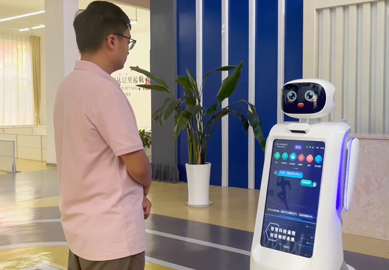 來(lái)到創(chuàng)澤公司前臺(tái),一名機(jī)器人接待員便主動(dòng)迎上前來(lái),詢問(wèn)你的來(lái)訪目的,還可以為你做信息登記,前臺(tái)機(jī)器人可以變身前臺(tái)接待無(wú)接觸訪客邀約又具備變身行政助理的潛能