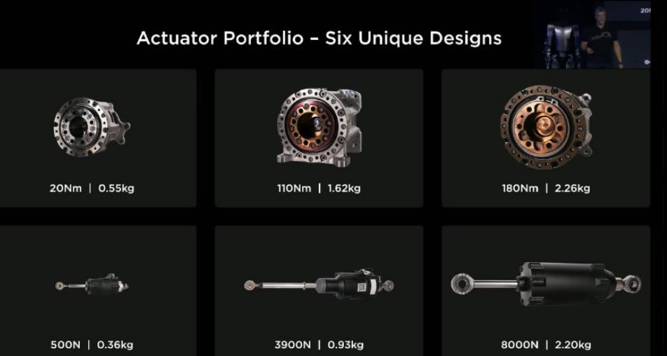 28個定制關(guān)節(jié)驅(qū)動器,復(fù)用汽車動力總成設(shè)計經(jīng)驗,設(shè)計6種關(guān)節(jié)驅(qū)動器,包括3種不同規(guī)格的舵機(采用諧波減速器)和3種