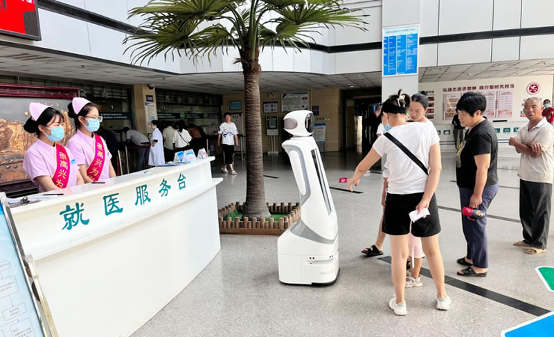 ?h人民醫(yī)院門診大廳有一位特殊的導(dǎo)診員,剛一亮相,就憑借一副呆萌的模樣引起群眾圍觀。它就是剛落戶醫(yī)院的導(dǎo)診機(jī)器人“創(chuàng)創(chuàng)”。它用風(fēng)趣的語言、準(zhǔn)確的應(yīng)答、熱情的講解,為前來咨詢的患者提供推薦診室、醫(yī)生介紹、掛號(hào)繳費(fèi)、就診指導(dǎo)、科室引L、健康宣教等多功能導(dǎo)診服務(wù),它能通過導(dǎo)航引路,帶L患者到達(dá)想去的目的地,只要站到導(dǎo)診機(jī)器人面前說出想咨詢的問題,它便可以準(zhǔn)確地做出應(yīng)答。