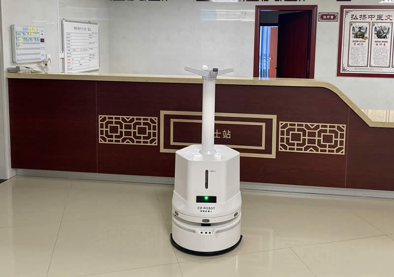 通過(guò)霧化消毒液的形式自動(dòng)對(duì)空氣進(jìn)行消毒的機(jī)器人?砂丛O(shè)定路線,自主導(dǎo)航行走,6組霧化噴頭出霧量大,殺毒效果快,全自動(dòng)對(duì)室內(nèi)空間物表和空氣進(jìn)行 360° 無(wú)死角消毒,避免人員感染風(fēng)險(xiǎn)?蓮V泛用于醫(yī)院、 銀行、學(xué)校、餐廳、酒店、工廠、寫(xiě)字樓、政務(wù)機(jī)關(guān)、地鐵、 機(jī)場(chǎng)等場(chǎng)景。